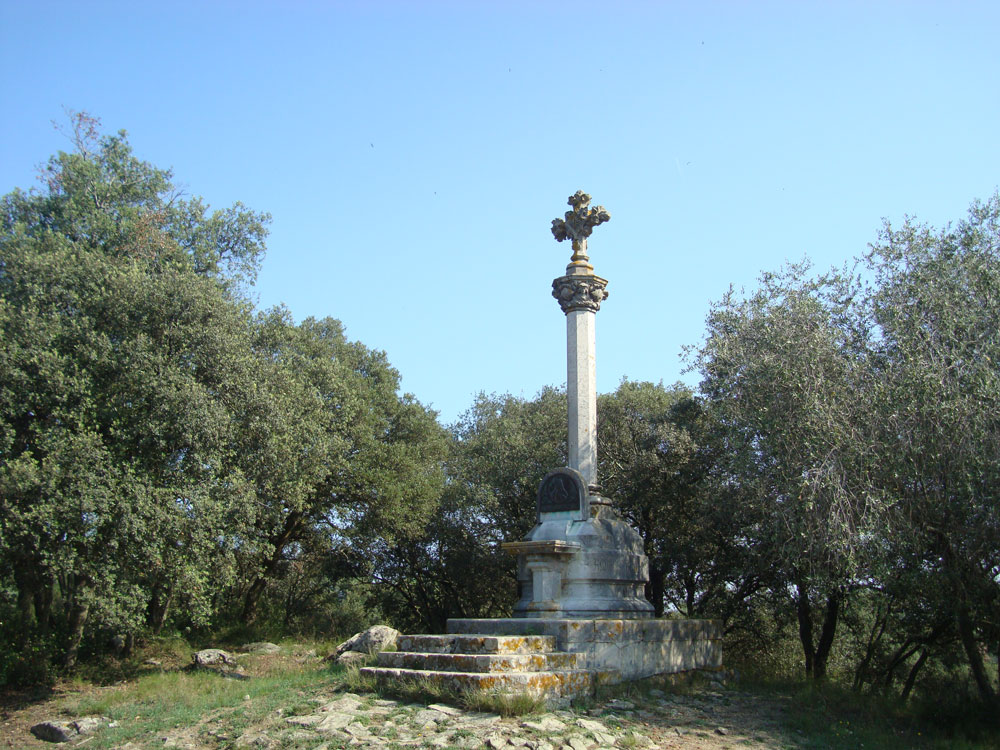 Per començar la nostra ruta ens dirigirem en cotxe a Romanyà de la Selva per la carretera GIV-6612 i deixarem el vehicle a la mateixa entrada del poble. Des d’aquest punt ja és visible el primer punt d’interès del nostre itinerari: a uns cent metres, creuant la mateixa carretera amb el poble a la nostra esquena, trobarem La Creu de Romanyà (coordenades UTM 31 T 415898 4539239 ETRS 89), una construcció d’aires modernistes dissenyada per l’arquitecte de Girona Fèlix de Azúa i sufragada pels propietaris dels terrenys. Inaugurada l’any 1904, fa uns set metres d’alçada i alguns dels seus blocs pesen més d’una tona; malmesa durant la Guerra Civil, va ser reconstruïda el 1945, moment en qual s’hi afegí una imatge del Crist del Sagrat Cor amb els signes d’alfa i omega.