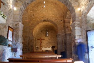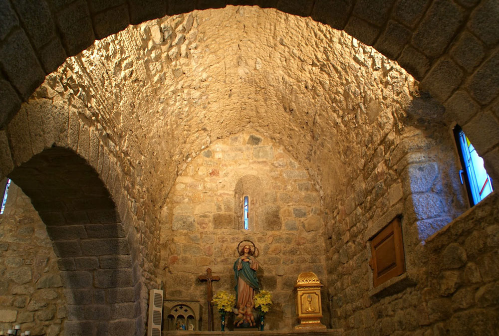 Arribats en aquest punt, en lloc de desfer el camí que hem fet podem seguir endavant pel mateix corriol, que aviat es converteix en un camí: amb un ascens no gaire pronunciat –uns quaranta metres de desnivell en total–, ens portarà en menys d’un quilòmetre i mig al centre de Romanyà de la Selva, on podrem admirar l’església parroquial de Sant Martí (coordenades UTM 31 T 415898 4539239 ETRS 89). És una construcció romànica dels segles X i XI, amb planta de creu grega, absis de planta trapezoïdal i voltes de canó reforçades amb arcs de ferradura; a la intersecció dels braços del transsepte s’hi aixeca una estructura semblant a una petita cúpula, més elevada que la resta de la nau. A l’exterior, el campanar és d’un estil romànic més evolucionat, construït a cavall dels segles XI i XII: és una senzilla torreta quadrada d’un sol pis amb finestres geminades de columneta i rematades per un capitell sense decoració.