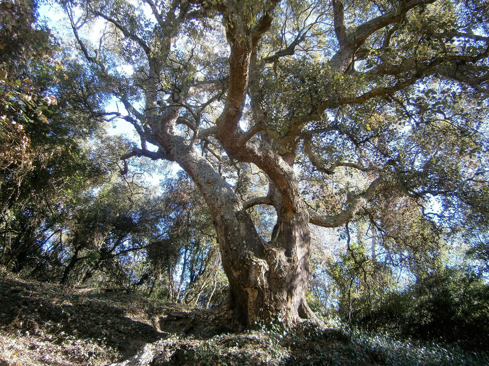Seguirem el mateix corriol per el que hem vingut en lleuger descens fins arribar a un camí una mica més ample que haurem d’agafar cap a la dreta; després de caminar poc més de tres cents metres ens trobarem davant de la primera alzina monumental del nostre recorregut: el Suro Xato (coordenades UTM 31T 499145, 4633793 ETRS89).