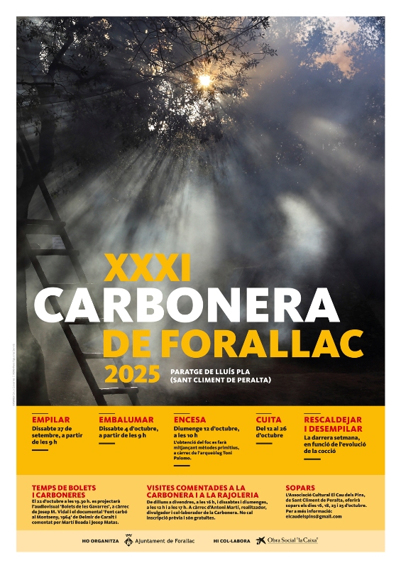 La celebració, que des de fa més de tres dècades recupera i posa en valor l’antic ofici de carboner, s’allargarà fins a finals d’octubre i inclourà les diferents fases del procés tradicional de producció del carbó, així com diverses activitats paral·leles per a tots els públics. Com és habitual, es desenvoluparà al paratge de Lluís Pla, a Sant Climent de Peralta.