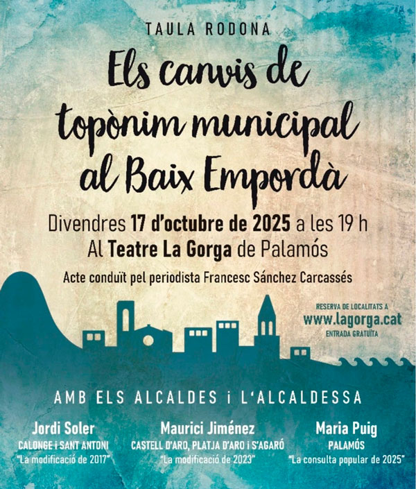 L’acte de divendres és organitzat per l’Associació de Veïns de Sant Joan amb la col·laboració de l’Ajuntament de Palamós, i es basa en la realització d’una taula rodona que tindrà lloc al teatre La Gorga, a partir de les 19 h, i amb accés lliure, on s’exposaran els processos viscuts en alguns municipis del Baix Empordà que han fet el canvi de topònim.