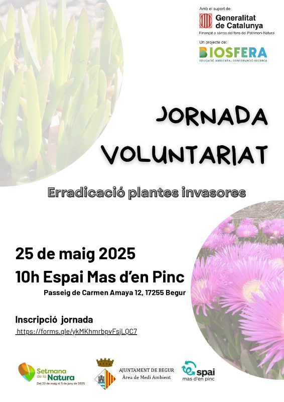 L’activitat tindrà lloc el dissabte 25 de maig a les 10 hores a l’Espai Mas d’en Pinc, i constarà d’una primera part teòrica on s’explicarà què són les espècies invasores, com afecten el territori i per què és important controlar-les. Tot seguit, i amb vehicles particulars, es durà a terme una sortida pràctica en una zona propera per col·laborar en l’extracció d’espècies vegetals invasores.