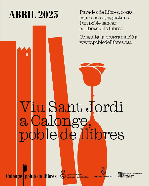 “Calonge, poble de llibres”, la primera booktown estable de Catalunya, celebra enguany Sant Jordi al llarg de tot el mes d’abril. Un mes en què el municipi s’omplirà de llibres, roses, teatre, música, signatures i actes populars per reivindicar la literatura.
