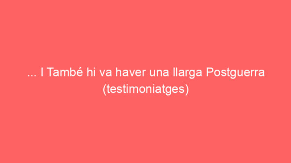… I També hi va haver una llarga Postguerra (testimoniatges)Després de gairebé tres anys d’hotilitats fraticides, amb un balanç final de més d’un milió de víctimes, va començar una…