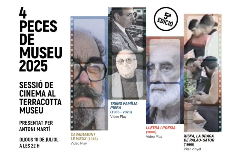El proper 10 de juliol a les 22 hores, tindrà lloc la cinquena edició de “4 peces de Museu” al Terracotta Museu, una sessió de cinema a la fresca singular que ofereix al públic l’oportunitat de redescobrir la memòria artística i cultural del territori a través de quatre curtmetratges documentals.