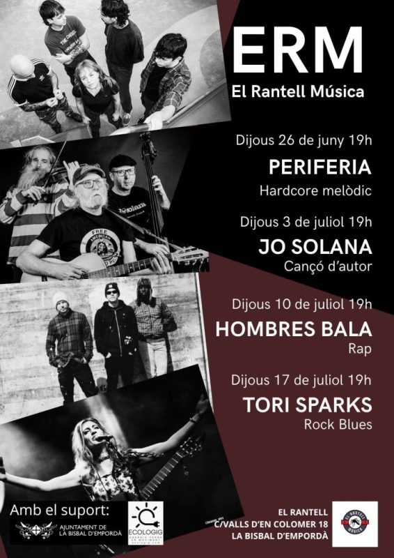 Aquest dijous arrenca una nova edició del cicle ERM – El Rantell Música, una proposta musical que tindrà lloc a l’espai exterior del carrer Valls d’en Colomer, davant del Rantell. Durant quatre dijous consecutius, s’hi podran escoltar actuacions en directe de formacions de diferents estils, amb entrada lliure i començament a les 19 hores.