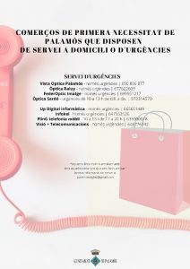 Palamós.- Molts comerços de Palamós han reaccionat davant la situació de confinament dels ciutadans que comporta l’estat d’alarma provocat per la pandèmia del coronavirus, i s’han organitzat per a realitzar serveis a domicili o d’urgència.