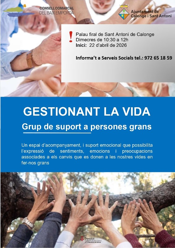 El projecte anomenat “Gestionant la vida” compta amb la col·laboració de Dipsalut i les inscripcions s’han de dur a terme a través de Serveis Socials de Calonge i Sant Antoni, al telèfon 972 65 18 59.