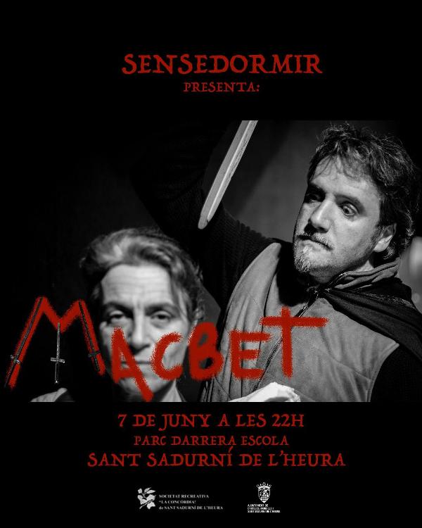 El grup de teatre Sensedormir, en plena forma, presenta “Macbet” el proper dissabte 7 de juny. El nou espectacle, una reinterpretació de la tragèdia Macbeth de William Shakespeare, s’estrenarà a les 22 hores al parc de darrera de l’Escola la Pedra Dreta de Sant Sadurní de l’Heura i l’entrada té un cost de 8 euros.