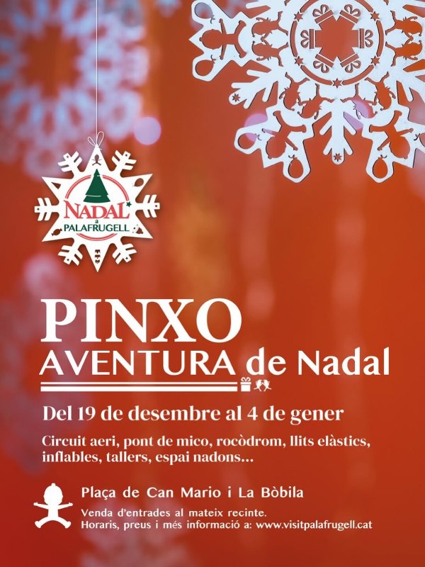 El Pinxo Aventura de Nadal s’instal·larà a plaça de Can Mario i La Bòbila i obrirà del 19 de desembre al 4 de gener, en horari de matí i tarda, excepte el primer i l’últim dia, que ho farà només a la tarda i al matí respectivament. L’espai ofereix una experiència d’aventura per a totes les edats, amb circuit aeri, pont de mico, rocòdrom, llits elàstics, inflables, tallers, espai de nadons i altres activitats. Les entrades es podran adquirir al mateix recinte, amb preus de 3 euros per una sessió, 5 euros tot el dia i 12 euros l’abonament de cinc sessions.
