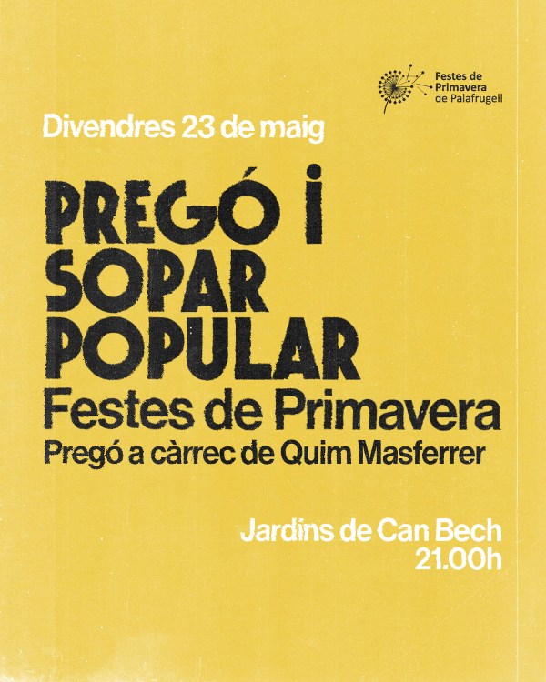 El pregó a càrrec de l’actor Quim Masferrer i la justificació i mostra del cartell de Festes de Primavera a càrrec d’Abril Martí Ballabriga seran els encarregats aquest 23 de maig d’obrir les Festes, les quals arriben a la seva 63a edició.