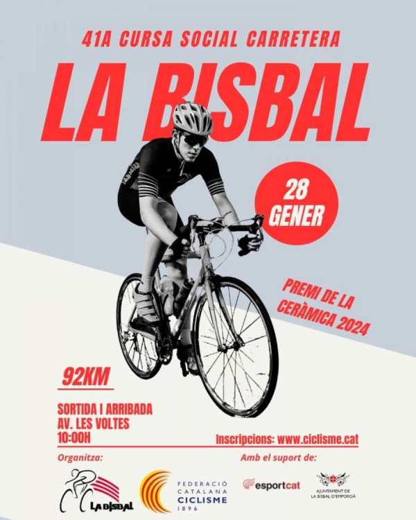 La Bisbal d’Empordà.- La Social de la Bisbal – Premi de la Ceràmica, organitzada pel Club Ciclista La Bisbal, celebra aquest diumenge 28 de gener la seva 41a edició i torna d’aquesta manera al calendari ciclista després de no celebrar-se el passat 2023.