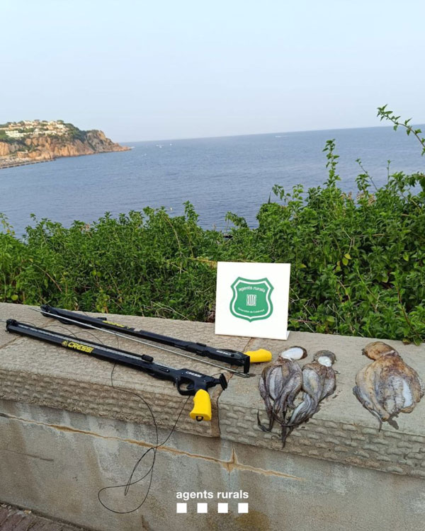 Els fets van passar a Sant Feliu de Guíxols. En total, els efectius li van requisar quatre exemplars que l’home havia capturat, un dels quals encara era viu i el van poder retornar al mar. A més, els Agents Rurals van intervenir dos fusells amb els quals l’home pescava els animals. Des del cos demanen que es respecti la normativa en matèria de pesca recreativa. En aquest sentit, recorden, aquesta activitat genera un seguit d’impactes biològics i ecològics que cal gestionar correctament perquè la seva pràctica sigui plenament compatible amb la preservació dels recursos i els ecosistemes.