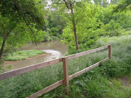 En un tram de 1.500 metres, el meandre del riu forma dos braços, el principal i un de secundari, el qual queda sec en estiatge però que es pot activar en crescudes, reduint així el cabal punta a la llera principal.