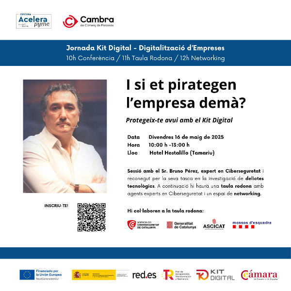 La Cambra de Comerç de Palamós impulsa una nova jornada de Kit Digital dins del programa Acelera Pyme per la Digitalització 2025 amb una pregunta directa i inquietant: “I si et pirategen l’empresa demà?”. L’objectiu: conscienciar sobre la ciberdelincuencia, i preparar oferint eines a les empreses del territori per afrontar els riscos reals de la ciberseguretat.