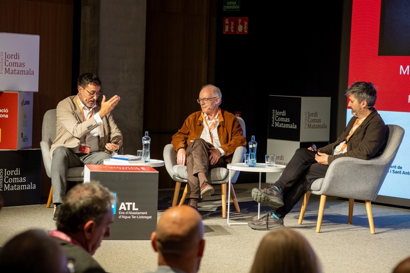 A la primera, “Les aigües”, hi han participat l’enginyer industrial Joan Gaya i el director del Museu del Disseny de Barcelona, José Luis de Vicente, moderats pel periodista de TV3, Xavier Grasset. A la taula, s’ha tractat dels recursos de l’aigua i com s’han d’aprofitar tots aquests recursos davant dels reptes de futur, derivats , sobretot, de l’emergència climàtica. Segons Gaya, d’aigua n’hi ha, i el que no es pot fer és malbaratar-la. També ha assegurat que el món agrari i el mon rural s’han començat a parlar arran de l’últim episodi de sequera. De la seva banda, de Vicente ha afirmat que cal combatre la idea que tota l’aigua que va al mar sigui aigua perduda. Tota ha d’anar al mar, però quan estigui ben regulada.