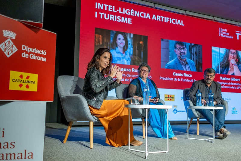 A la segona taula, amb el títol “Intel·ligència artificial i turisme”, moderada per la periodista i directora de comunicació de la Universitat de Barcelona, Laura Rosel, hi han pres part Genís Roca, president de la Fundació Puntcat i Karina Gilbert, enginyera informàtica i professora de la UPC. S’hi ha abordat l’oportunitat, però també el perill, que la IA pot suposar pel sector turístic. Per Gibert, les dades, la formalització del coneixement i la programació son tres aspectes fonamentals que marcaran aquesta eina. Roca, que ha qualificat la IA de nou software, ha proposat la creació d’una oficina de dades turístiques per treballar, de forma coordinada a tot Catalunya, des dels àmbits privats i públics.