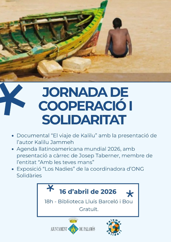 Dijous vinent, 16 d’abril, a les 18 hores, la sala polivalent de la Biblioteca Municipal acollirà la Jornada de Cooperació i Solidaritat, on cada any Palamós destaca aquelles iniciatives, publicacions, entitats o persones, vinculades a projectes de cooperativisme amb el Tercer Món.