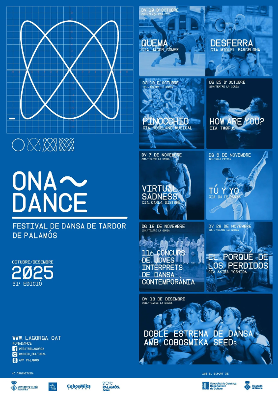 El festival de dansa contemporània de tardor a Palamós, ONADANCE, enceta aquest proper divendres 10 d’octubre la seva 10a edició, 21a comptant les edicions prèvies del Palamós Summer Dance, i consolidant l’oferta escènica al territori amb la representació de les arts del moviment més actuals i amb espectacles pensats per a tots els públics.