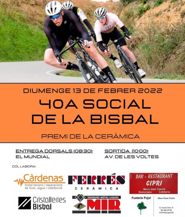 La Bisbal d’Empordà.- Aquest diumenge 13 de febrer, el calendari català de socials de carretera 2022 farà parada al municipi amb la disputa d’una de les curses més tradicionals: la Social de la Bisbal – Premi de La Ceràmica.