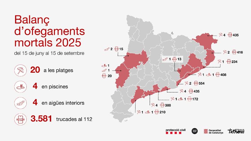 Tags: balanç, banys, Catalunya, estadística, morts, ofegament, piscines, platges, Salut, Sistema d'Emergències Mèdiques, societat, successos, temporada turística