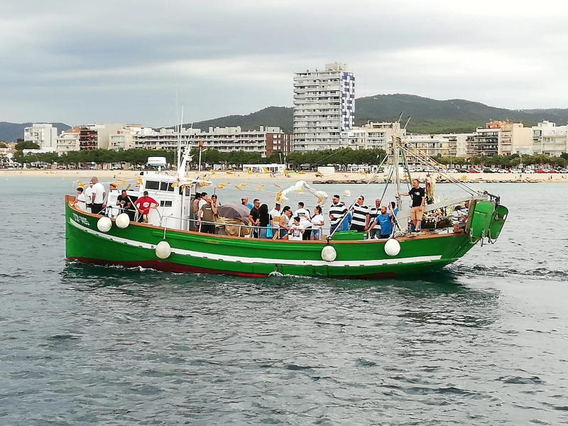 Aquest itinerari per mar compta amb la participació de diverses barques de pesca del port de Palamós i d’altres embarcacions menors que en fan l’acompanyament. El recorregut marítim de les embarcacions arribarà fins a les platges del municipi de la Fosca i Castell.