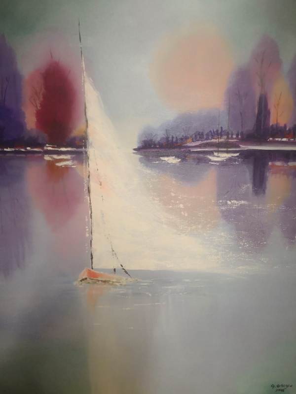 La mar és el tema que uneix als vint artistes que hi participen, entre ells Gloria Orozco, artista que viu a Santa Cristina. Per a aquesta ocasió, Gloria Orozco hi exposa un quadre que porta per títol “Hivern”, una obra de l’impressionisme abstracte feta amb pintura acrílica. L’artista va aconseguir transmetre la sensació de fred a través dels colors pastel, de la boira que es percep al fons del quadre i de les formes difuses. Però la pintura de Gloria Orozco no és simplement un seguit de fotografies sinó que sempre va més enllà aportant reflexions, pensaments, etc. És una pintura viva i amb el segell de Gloria Orozco perquè connecta amb la persona i la fa capbussar en un mar ple d’idees que van i venen igual com és l’artista a nivell personal. Així doncs Hivern no és tan sols una marina pintada a l’època més crua de l’any sinó que en aquest cas l’artista li va voler donar un sentit de final de la vida, la vellesa. I ho va aconseguir pintant a primer pla una gran vela blanca del vaixell empesa pel vent que impressiona a l’espectador igual com ho fa la rapidesa en que passa el temps, a nivell real, sobretot si la persona es troba en la darrera etapa de la vida.