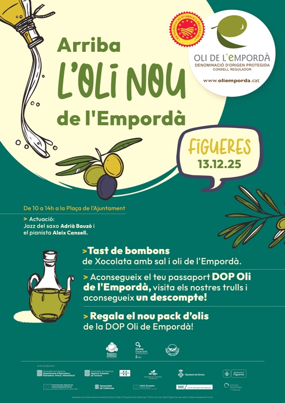 La Denominació d’Origen Protegida de l’Oli de l’Empordà presentarà l’oli nou el dissabte 13 de desembre de 10 a 14 hores a la Plaça de l’Ajuntament de Figueres. Durant tot el matí, es podrà tastar i adquirir l’oli nou directament dels productors de la DOP.