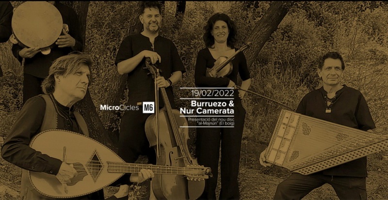 Burruezo & Nur Camerata ens presenten el seu darrer disc, “al-Majnún” (Satélite K). Un compendi de peces inspirades en el món d’al-Andalus i/o també algunes cançons tradicionals andalusines interpretades sota nous prismes. Un món imaginari entre Orient i Occident, entre el passat i el futur, entre la tradició i la transgressió. Amb elegància, i, alhora, amb esquinç, amb passió, sense academicismes.