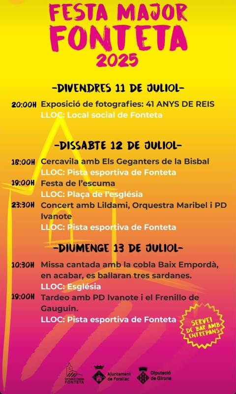 Les festes majors de Calonge i Sant Antoni, Fonteta i Palafrugell i la XVI Fira de la Cervesa Artesana de Jafre són algunes de les activitats més destacades. A continuació trobareu els cartells amb tota la programació.
