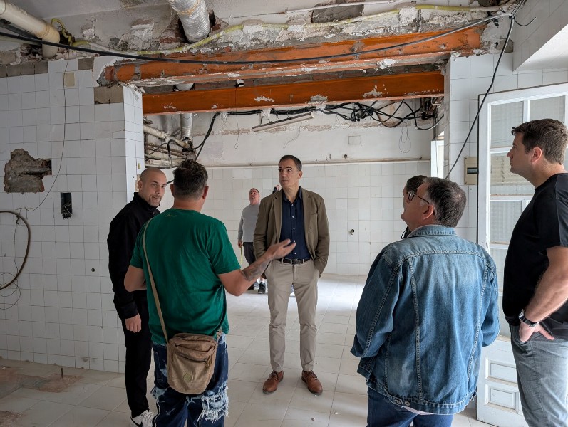 L’alcalde de Sant Feliu, Carles Motas, i el primer tinent d’alcalde i regidor de Patrimoni Cultural, Josep Melcior Muñoz, han visitat les obres de reforma de l’Antic Hospital per veure com avancen.