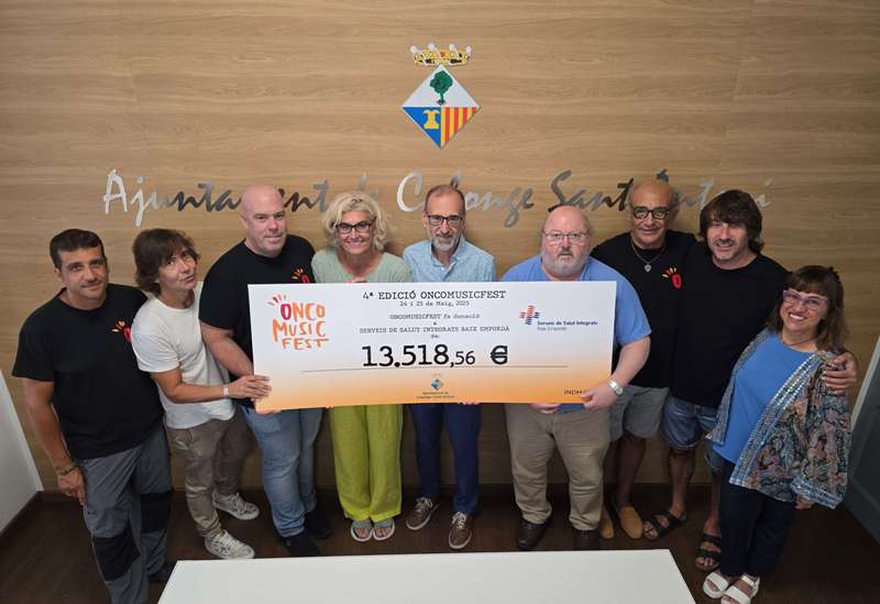 Els organitzadors de l’OncoMusicFest, el festival de música de caràcter solidari i familiar que va tenir lloc el 24 i el 25 de maig al castell de Calonge, han entregat els 13.518,56 € de beneficis recaptats durant el certamen a Serveis de Salut Integrats del Baix Empordà (SSIBE).