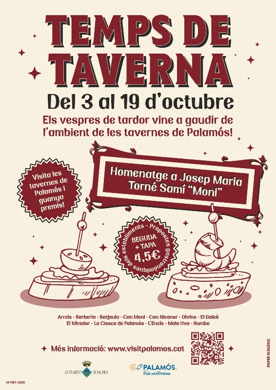 Amb l’objectiu de seguir potenciant la gastronomia local i, en aquesta ocasió, de posar en valor les tavernes del municipi en plena tardor, l’Àrea de Promoció Econòmica i Turisme de l’Ajuntament de Palamós ha posat en marxa aquesta campanya, que en la seva primera edició, vol retre homenatge al palamosí Josep Maria Torné Samí “Moni”, fundador de la mítica Taverna Can Moni de Palamós.