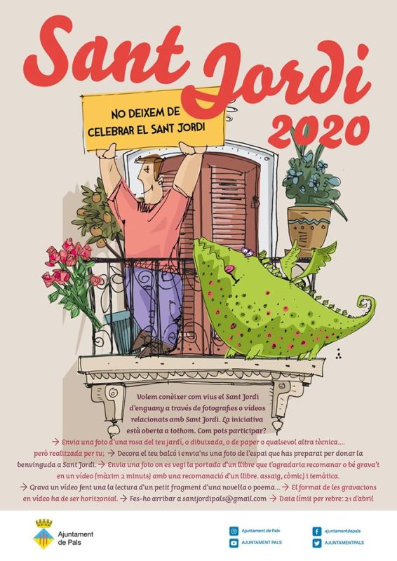 Pals.- L’Ajuntament de Pals, a través de l’Àrea de Cultura, proposa a les entitats i agents socials, així com a la ciutadania, de celebrar un Sant Jordi 2020 virtual.