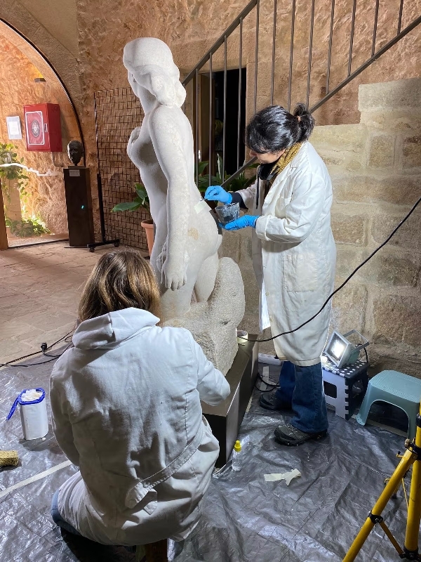 Després d’uns temps d’exposició, ha fet falta una neteja curosa per tornar-li l’aspecte original. De l’1 al 5 de desembre, les restauradores Laia Roca i Idoia Tantull han fet treballs de neteja mecànica per treure’n la pols superficial, i treballs de neteja física-química per eliminar taques i restes de dipòsits orgànics que embrutien la imatge visual de la peça. Després d’aquesta intervenció, l’aspecte de l’escultura Dona ha retornat als seus inicis.