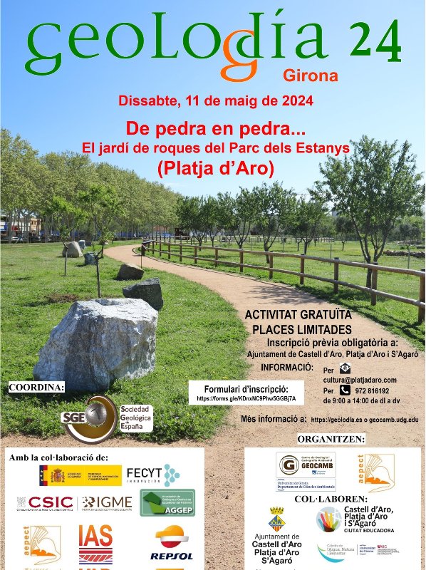 Aquest any la celebració del Geolodia de la província de Girona es durà a terme el dissabte 11 de maig al al Parc dels Estanys de Platja d’Aro, coincidint amb la finalització de la instal·lació del Jardí de Roques a l’extrem del Parc al que s’accedeix pel carrer Tramuntana.