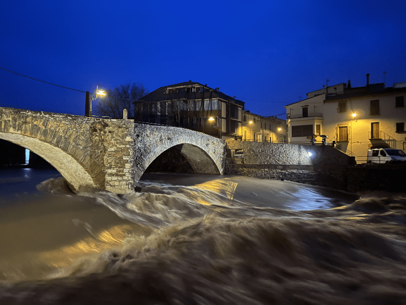 El riu Daró frega els 500m³/s i preocupa el desbordament al seu pas per la Bisbal