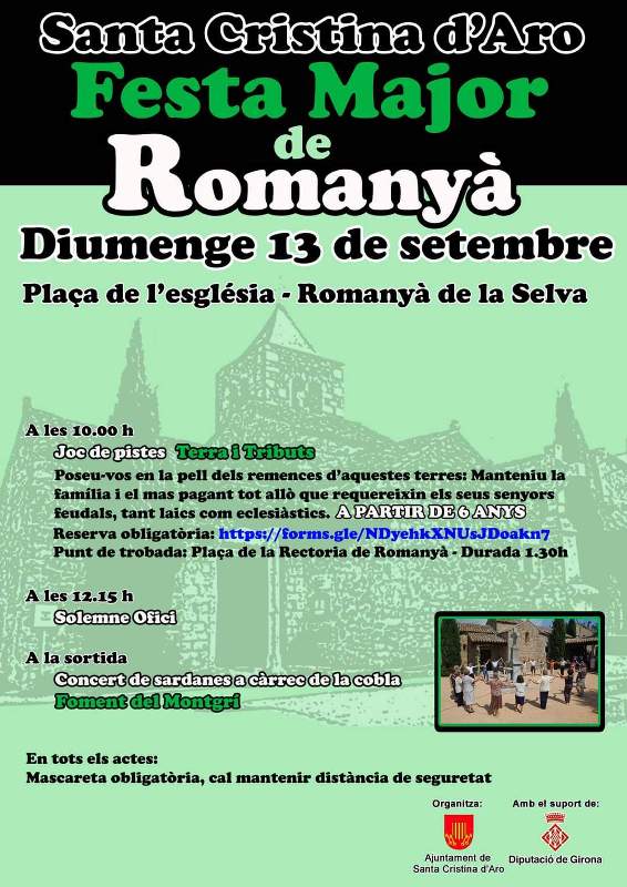 Santa Cristina d’Aro.- El diumenge 13 de setembre, el segon diumenge de setembre, Romanyà de la Selva es vestirà de Festa Major.