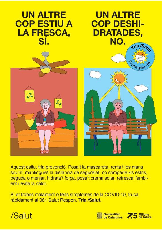 Beure molta aigua, protegir-se del sol amb crema solar, evitar les altes temperatures, ventilar i refrescar les llars i supervisar els infants a l’aigua són alguns dels consells de la campanya; els materials audiovisuals de la qual –ventalls, cartells, vídeos– es poden trobar a la web del canalsalut.gencat.cat i es difondran a través dels canals de comunicació dels sistema sanitari públic català, per xarxes socials i pels mitjans de comunicació.