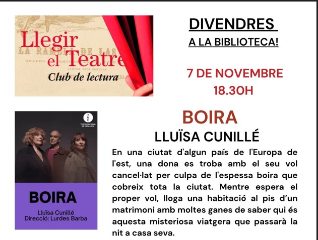 Després d’iniciar la temporada del Club de Lectura i del “llegim òpera”, el proper divendres 7 de novembre és el torn d’iniciar la nova temporada de “Llegir el Teatre”.