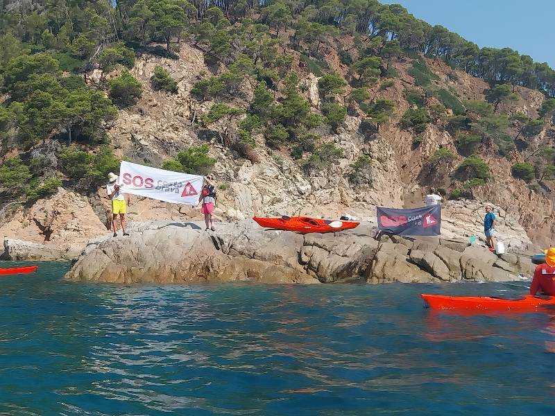 Aquest divendres al matí, a la Cala del Vedell de Mont-ras, SOS Costa Brava ha dut a terme una acció directa amb la participació de nedadors, practicants de caiac, snorkel, paddle surf i altres usuaris del mar per bloquejar simbòlicament l’accés de les embarcacions a l’interior de la cala.