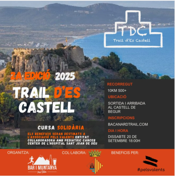 El pròxim dissabte 20 de setembre, a les 18 hores, el Castell de Begur tornarà a ser l’epicentre d’una jornada esportiva i solidària amb la celebració de la 2a edició de la Trail d’Es Castell, una prova de trail running organitzada per l’equip Bar i Muntanya Trail Team, amb la col·laboració de l’Ajuntament de Begur.